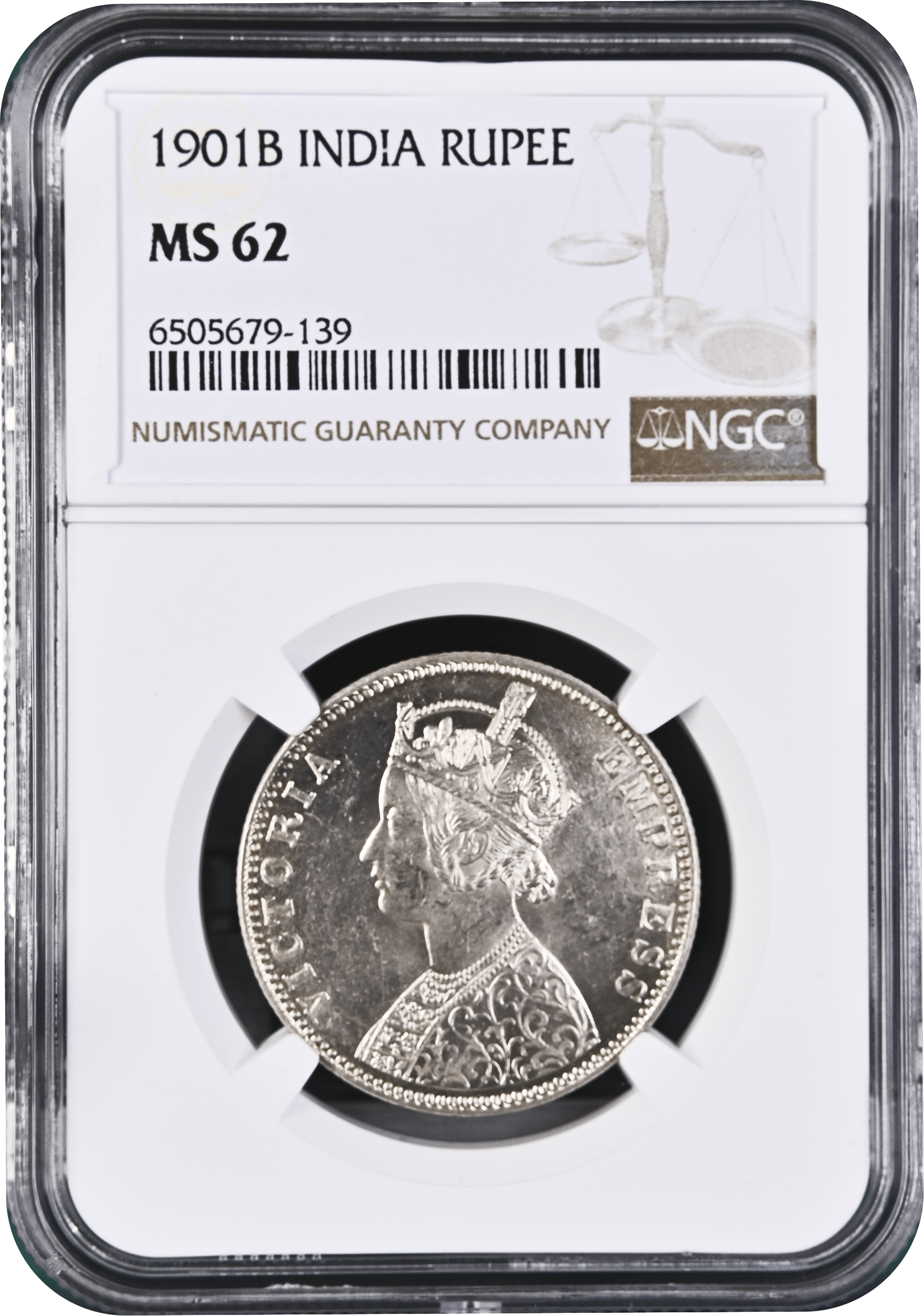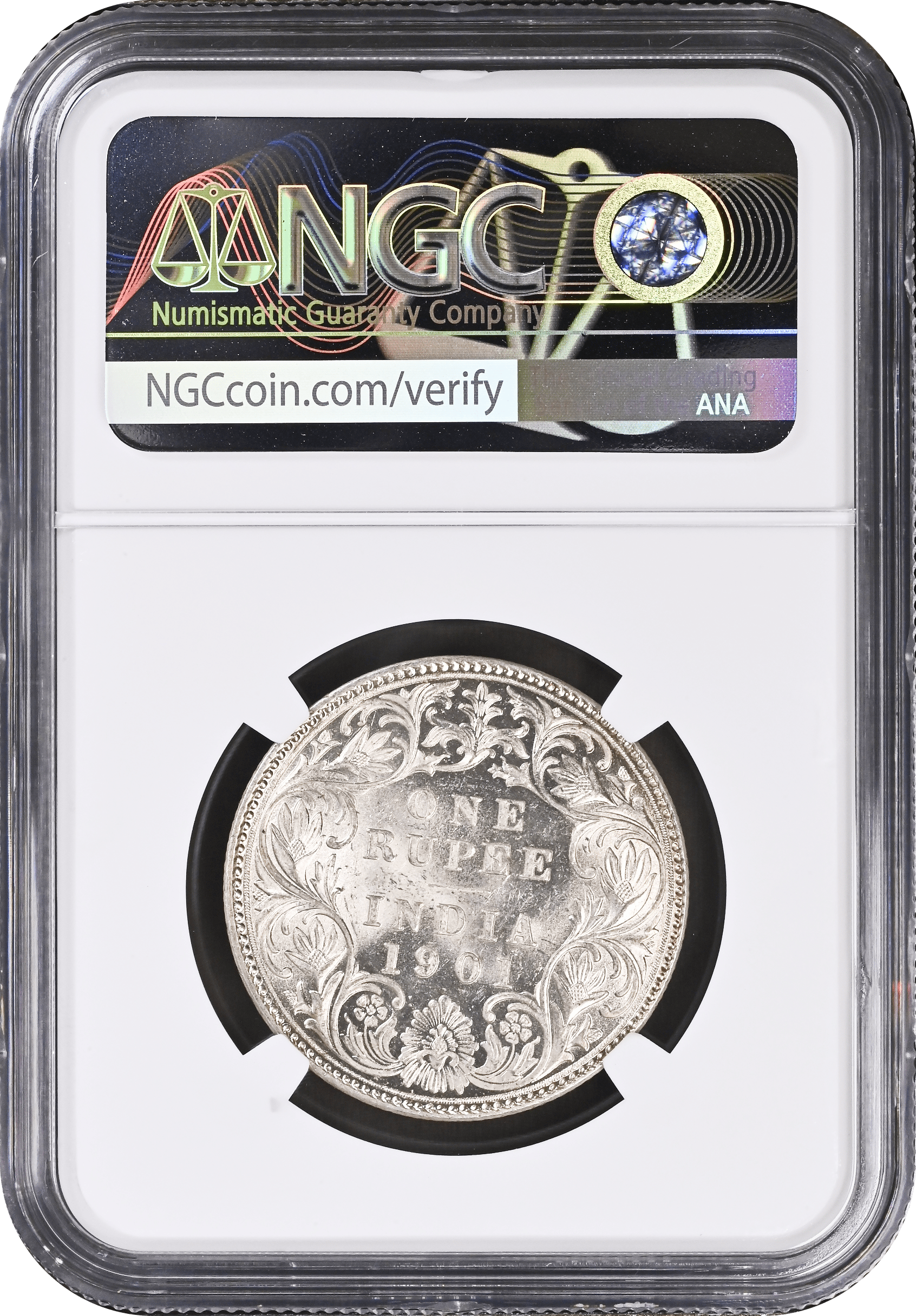 1901年B イギリス領インド ヴィクトリア ゴシック ルピー銀貨 NGC MS62