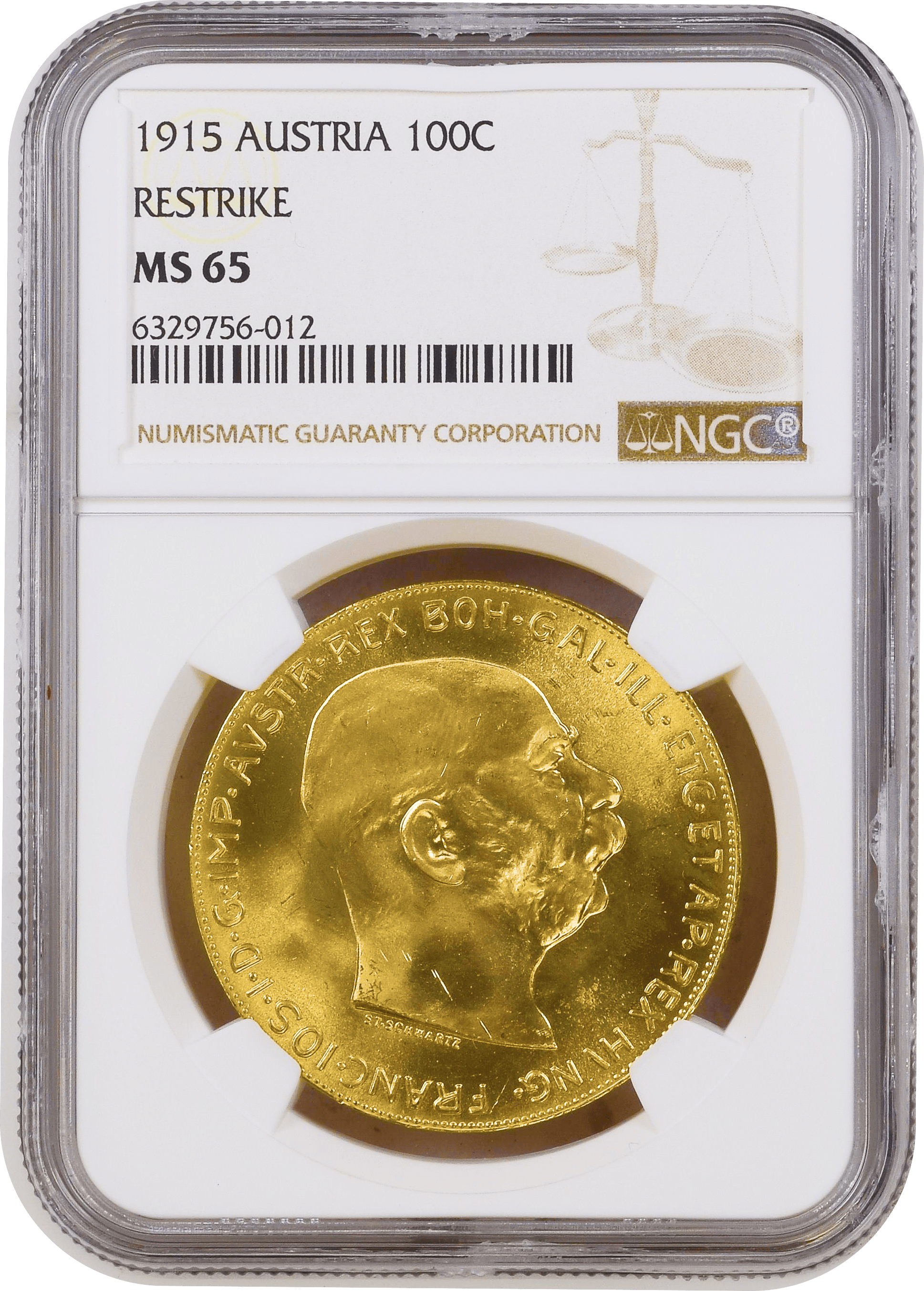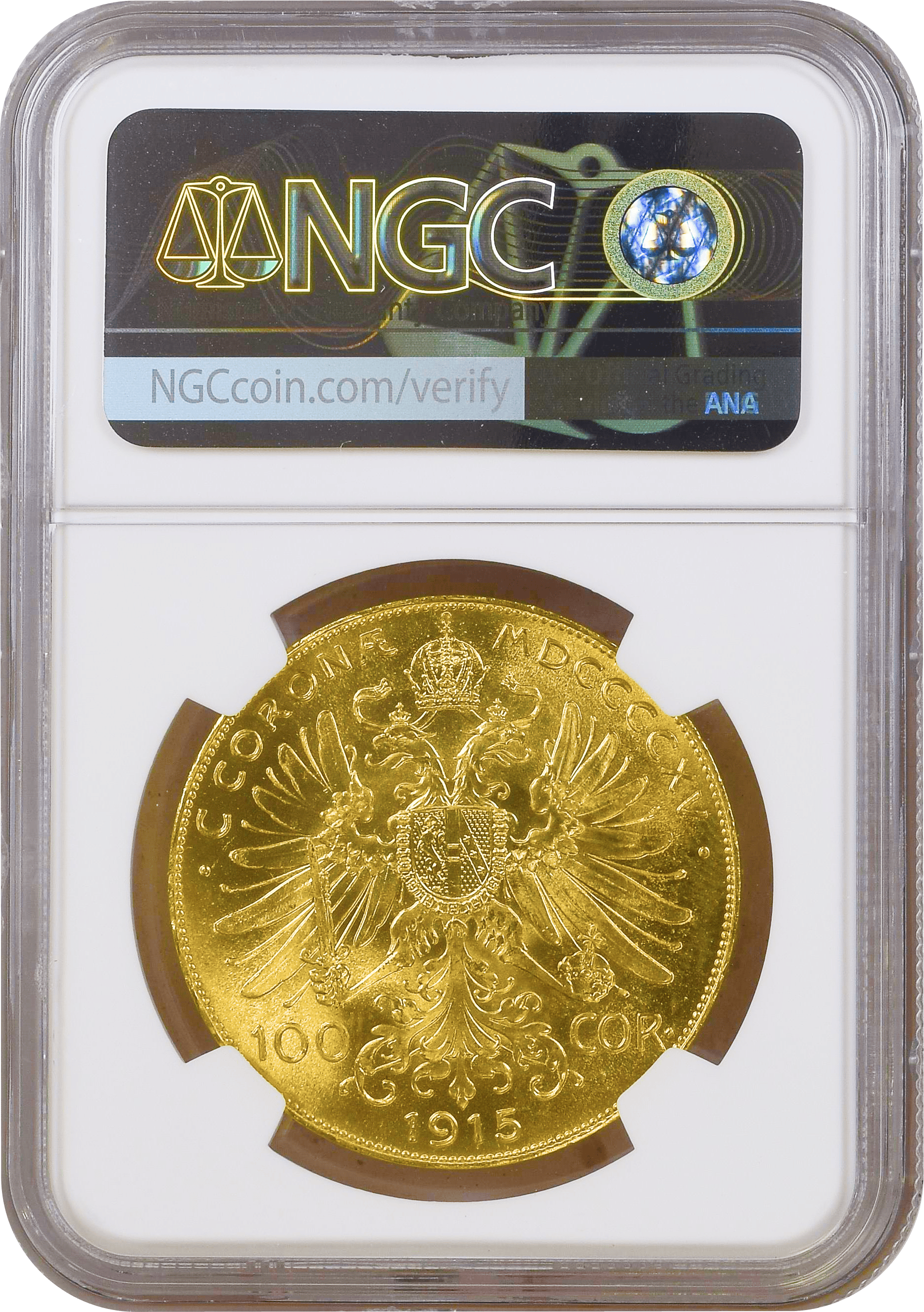 激動の時代を生き抜いたオーストリアの「国父」、フランツ・ヨーゼフ1世晩年の威厳に満ちた肖像と、ハプスブルク家の紋章でありオーストリア帝国の象徴である双頭の鷲が描かれた重厚な魅力のある金貨です。