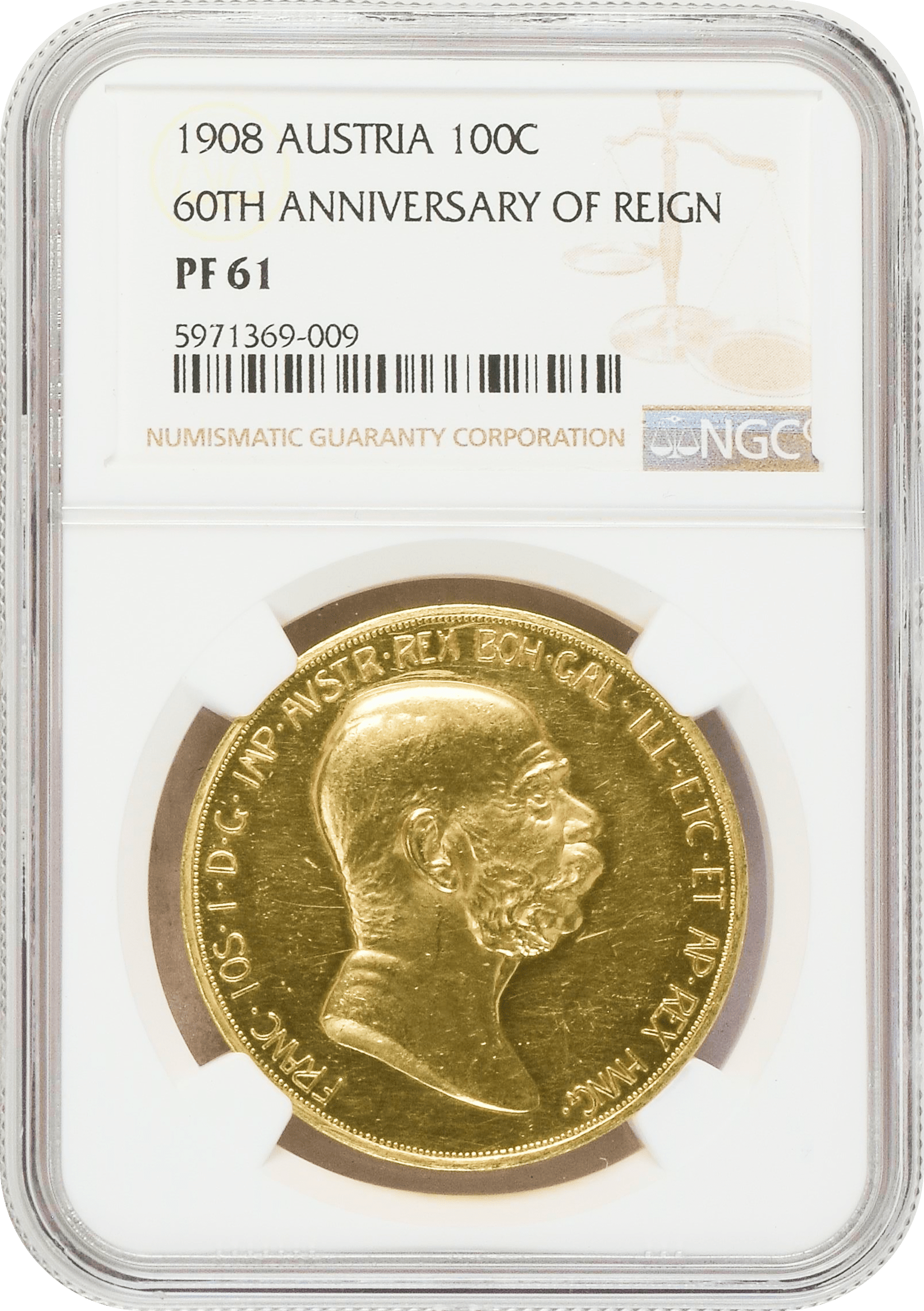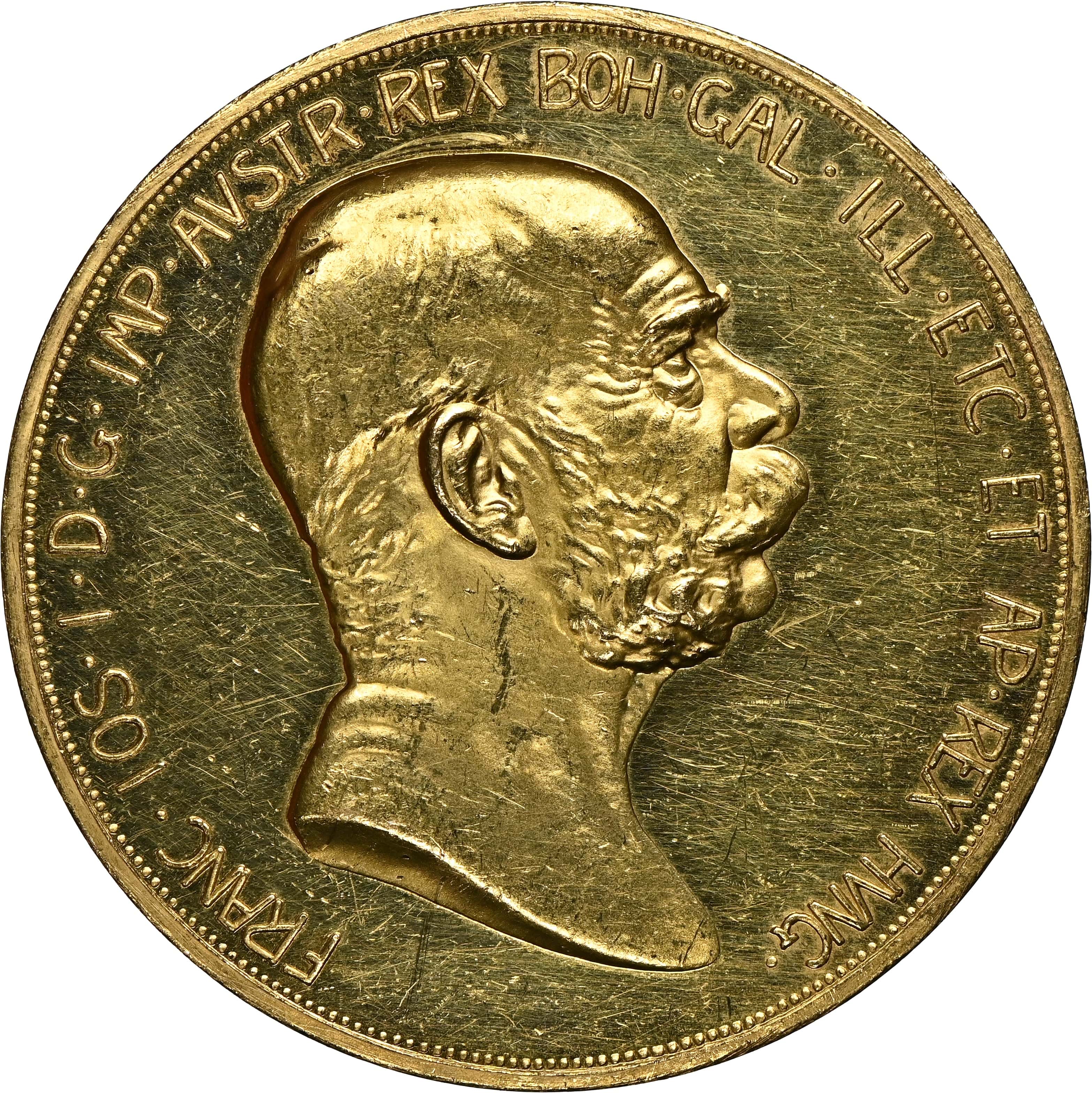 フランツ・ヨーゼフ1世の即位60周年を記念して発行された金貨です。