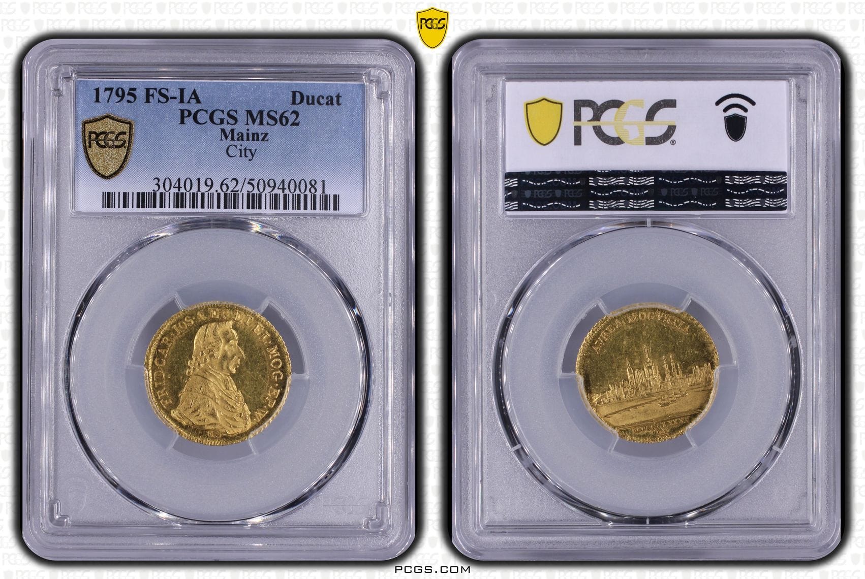 1795年 ドイツ マインツ フリードリヒ・カール・ヨーゼフ大司教 都市景観 1ダカット金貨 PCGS MS62