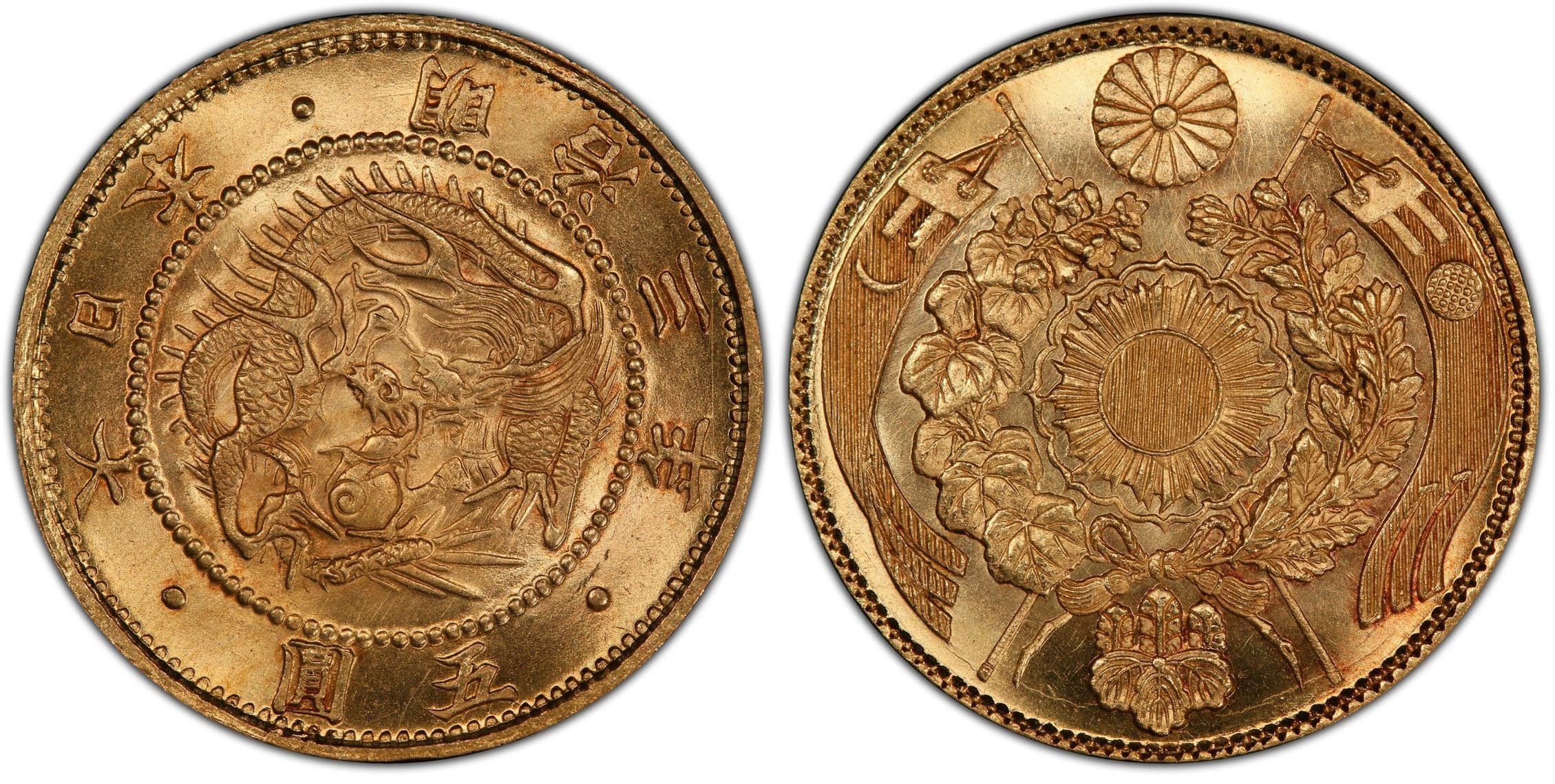 日本の美意識と西洋式の精緻な造幣技術が融合した、近代日本を代表する金貨のひとつです。