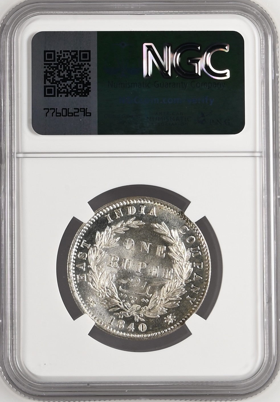 1840年 英領インド 東インド会社 ヴィクトリア ヤングヘッド ルピー銀貨 MS63