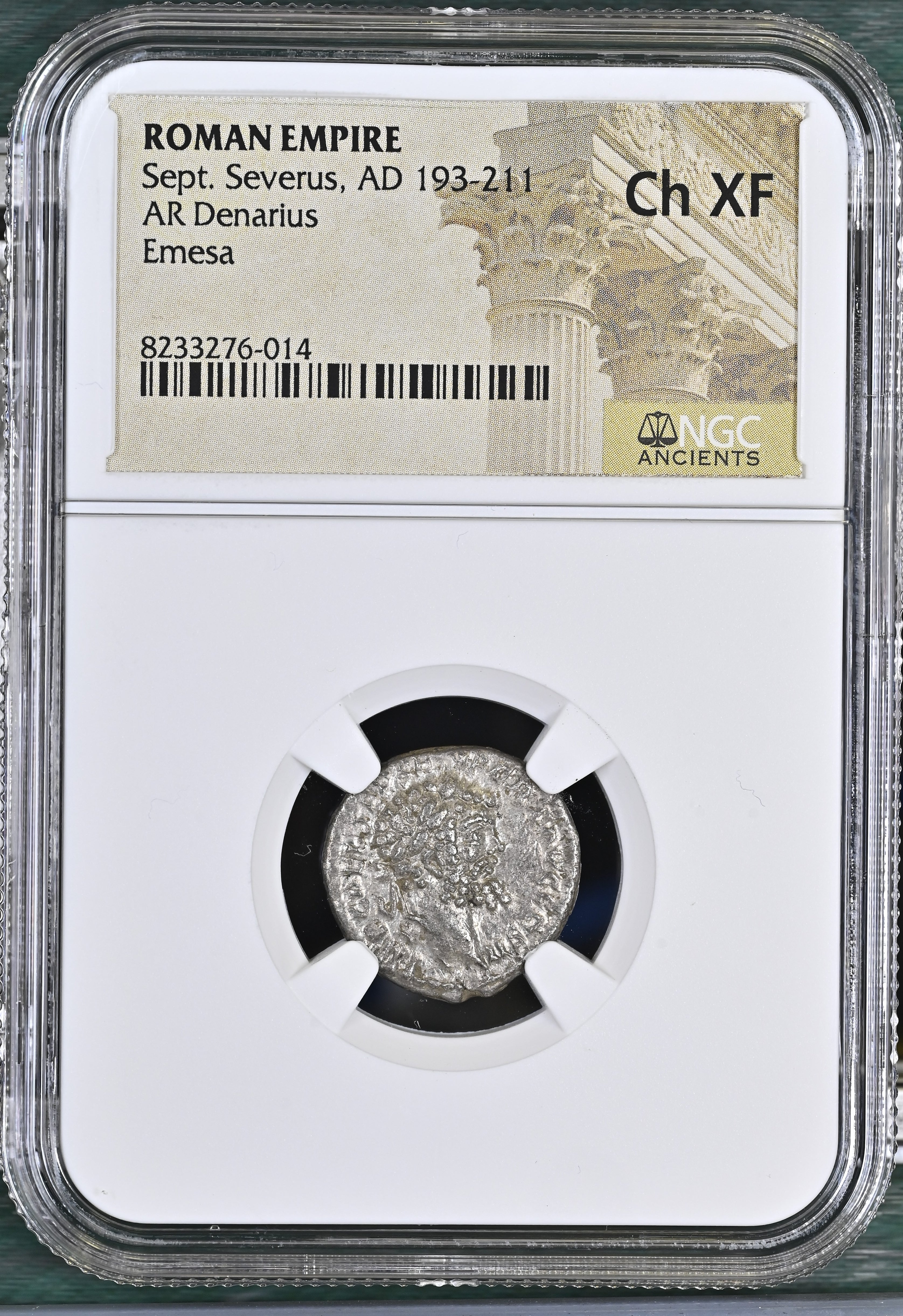 コインの表面には月桂冠を戴いたセウェルス帝の横顔が、