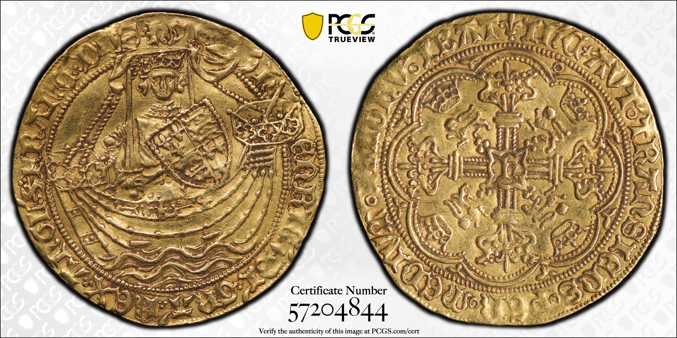 表面には剣と盾を構え船に乗る国王の姿が打刻されており、当時のイングランドの海上における影響力を象徴しているとされています。