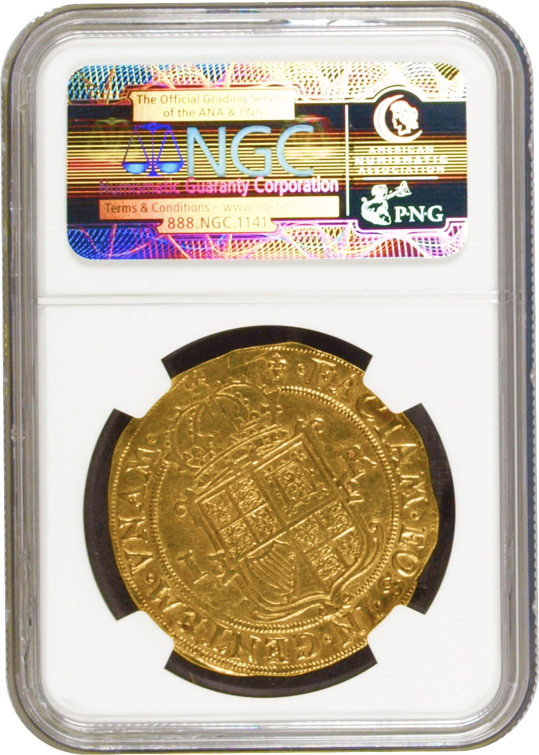 ハンマーによって打たれたジェームズ1世の甲冑や裏面の紋章の細かな意匠も美しく、歴史的にも美術的にも高い評価を有する逸品です。