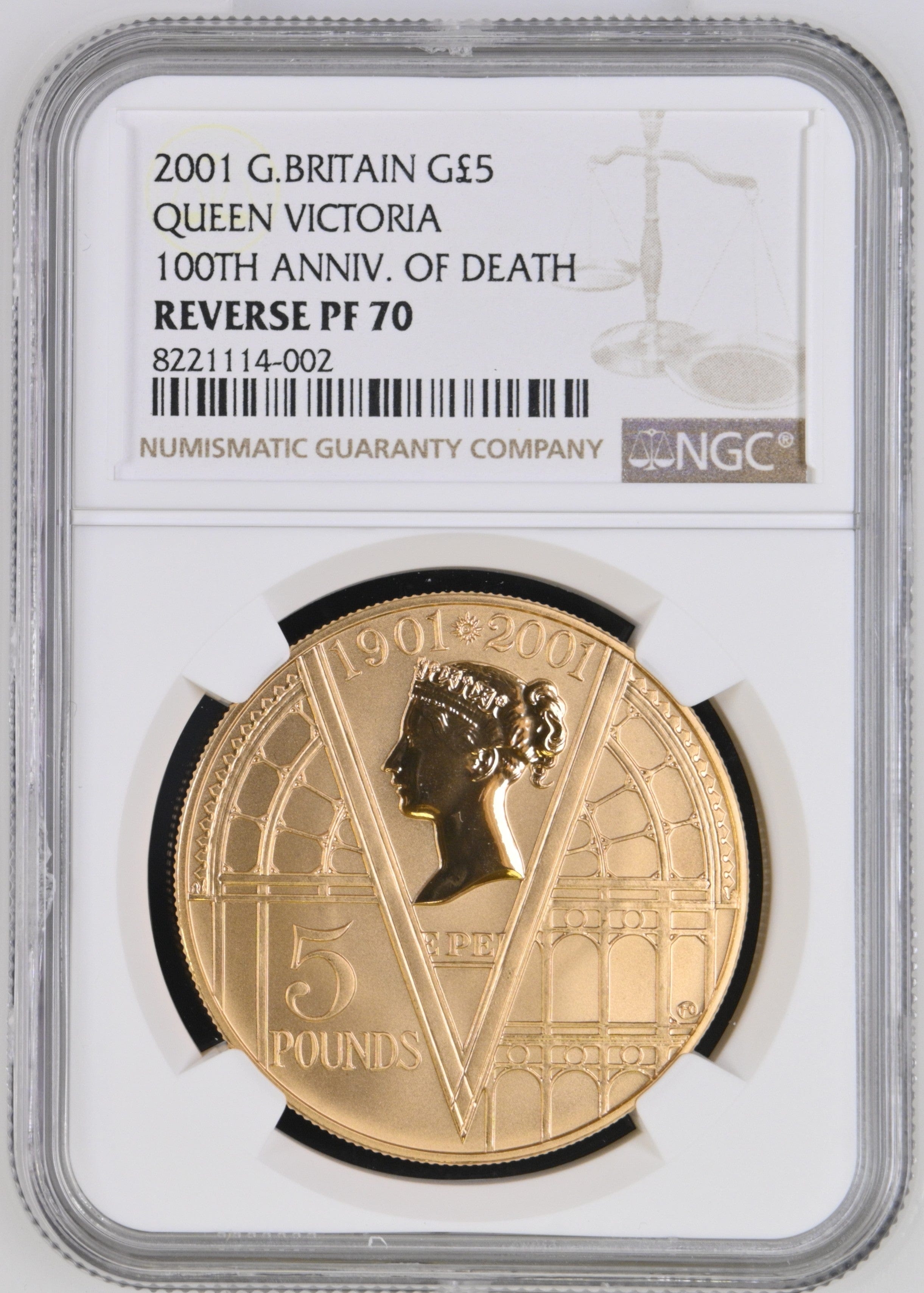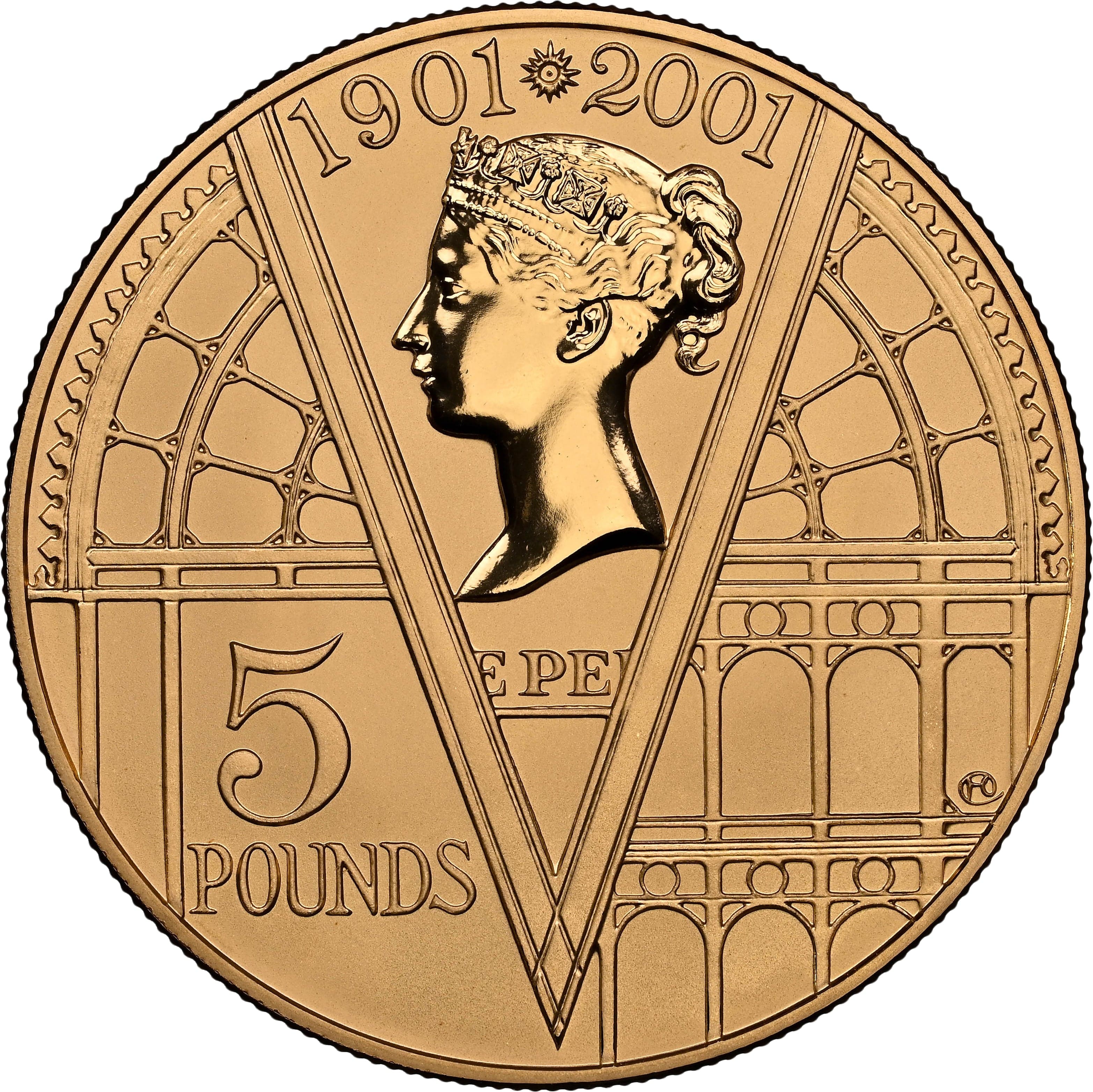 ヴィクトリア女王の没後100周年を記念して発行された5ポンド金貨です。