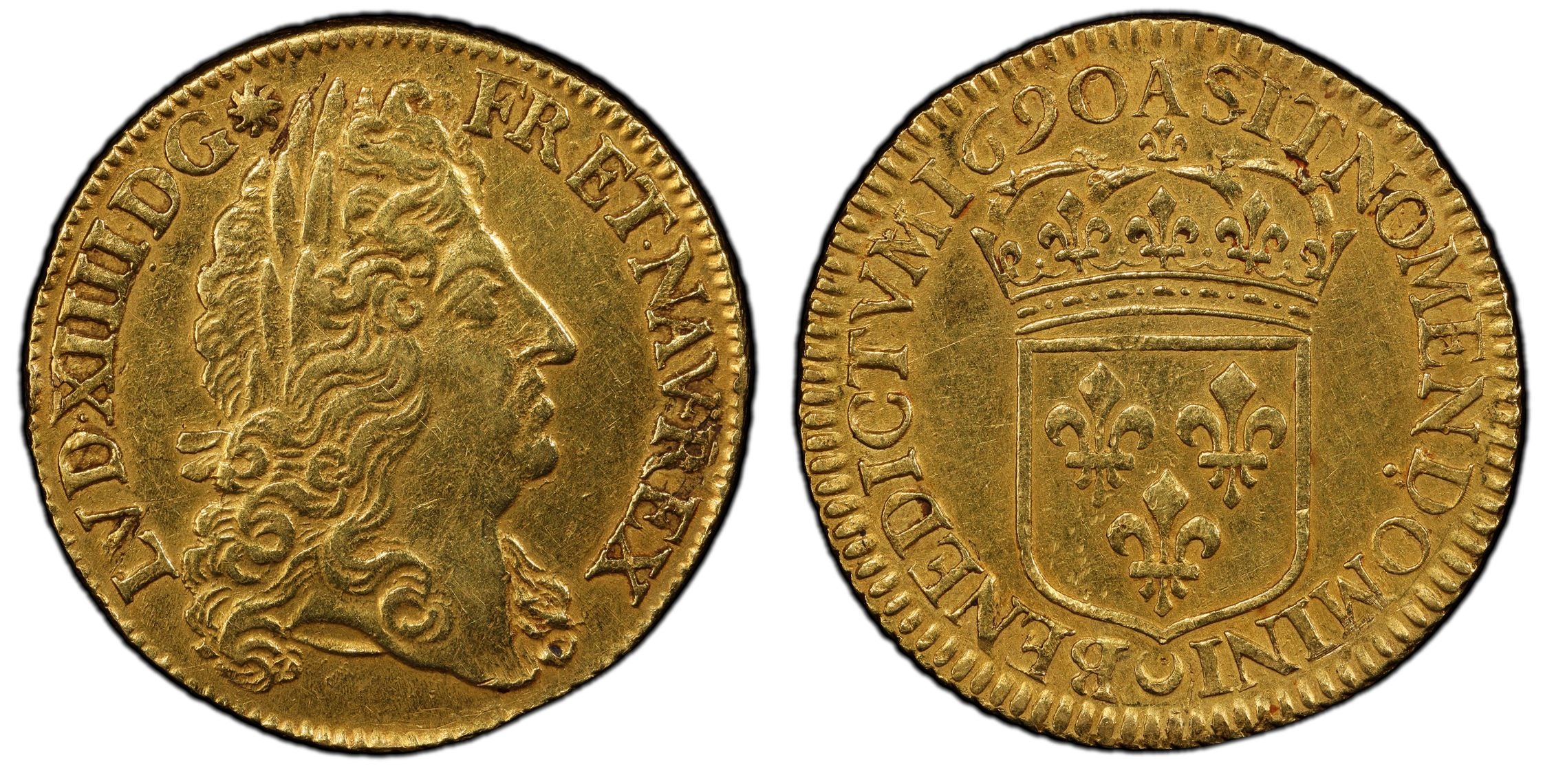 太陽王ルイ14世の治世、フランスがヨーロッパの文化と政治の中心として栄華を極めた時代にこの金貨は生まれました。