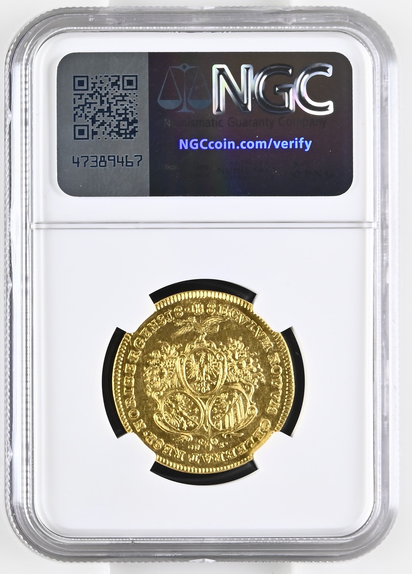 ラムダカット金貨は1ダカット、1/2ダカット、1/4ダカットなどさまざまな額面で発行されましたが、この2ダカット金貨が額面としては最大となります。