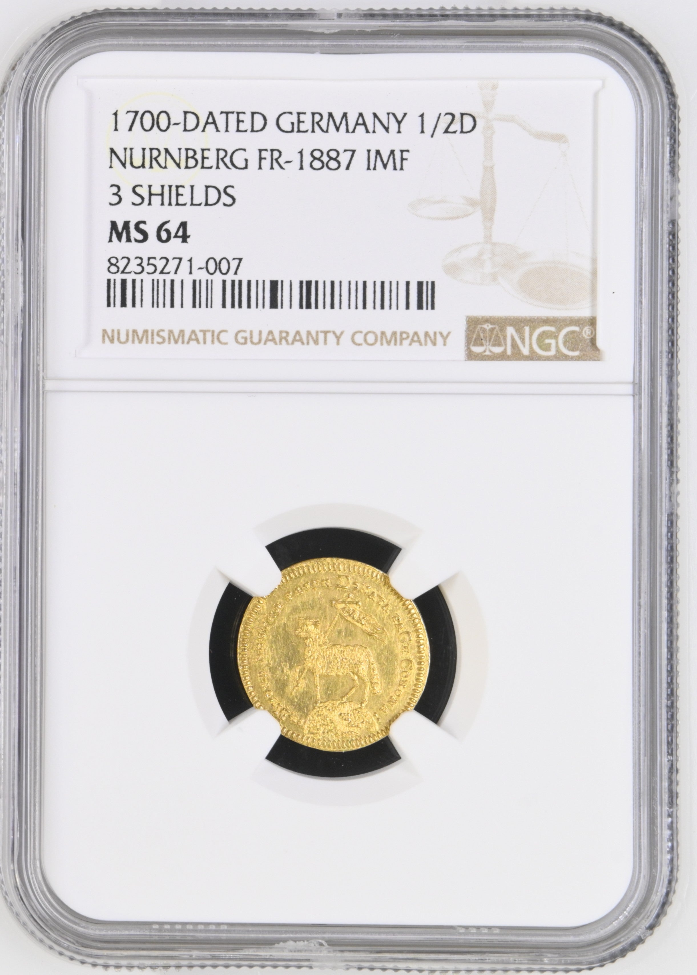 1700年 ドイツ ニュルンベルグ ラムダカット ハーフダカット金貨 MS64