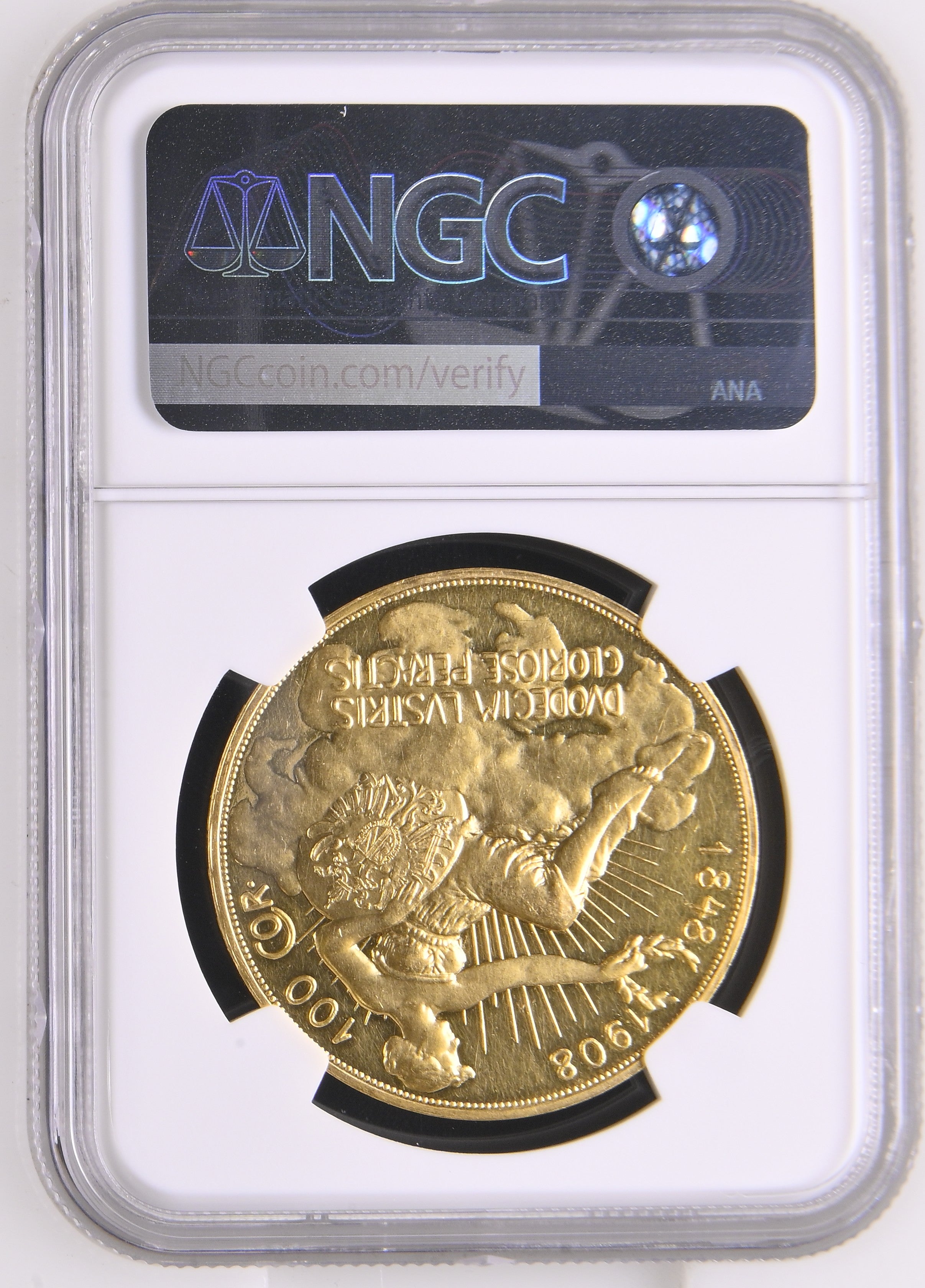 オーストリア皇帝フランツ・ヨーゼフ1世の治世60周年を記念して1908年に発行された、津通称「雲上の女神」と呼ばれる100コロナ金貨です。