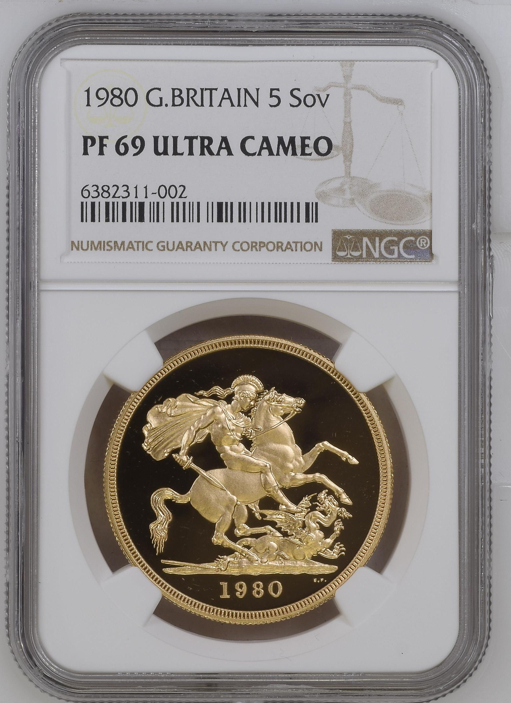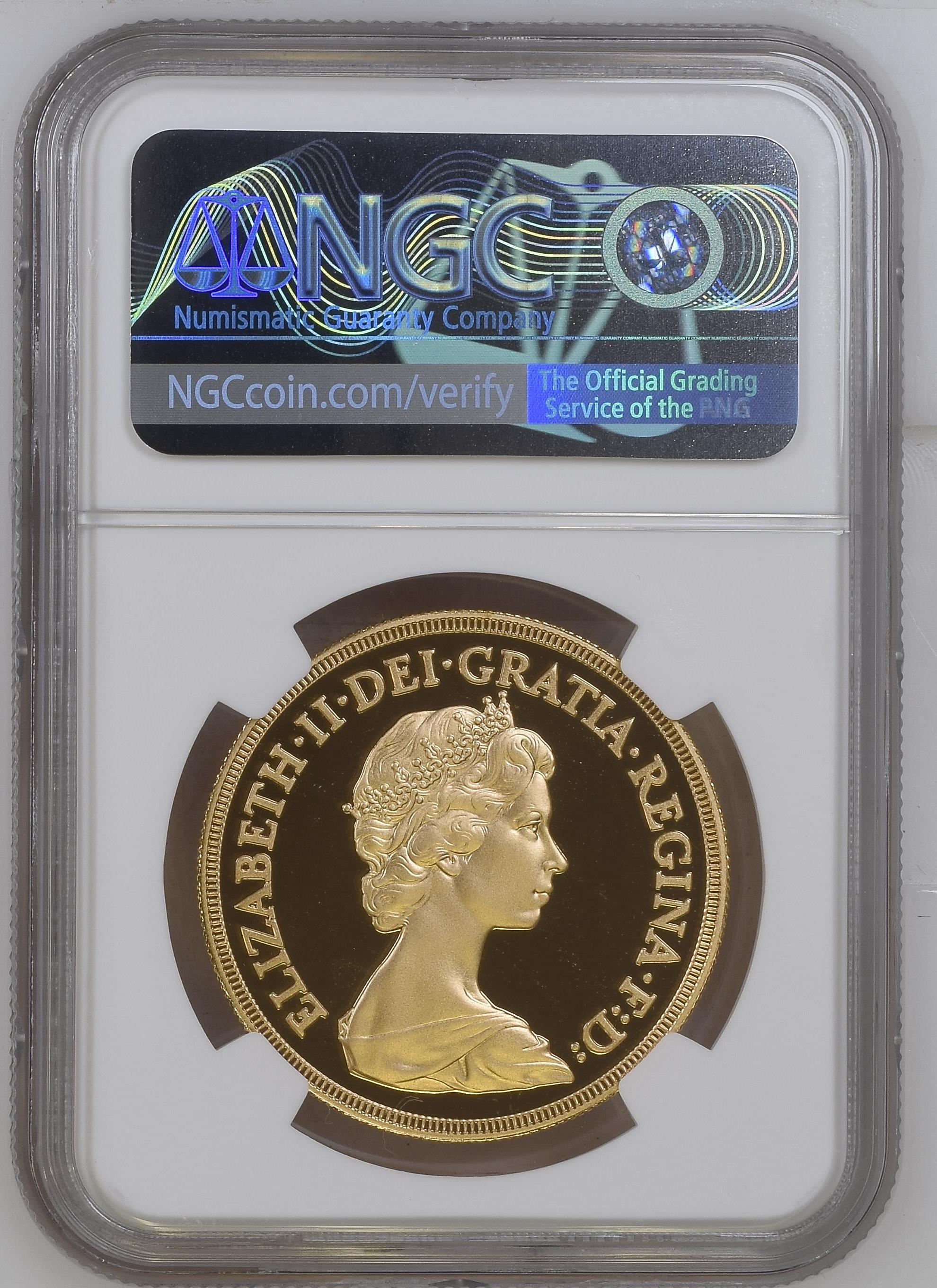 通称「ヤングエリザベス」と呼ばれる若き日の女王エリザベス2世の肖像が描かれた5ポンド金貨です。